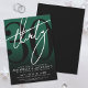 Celebrate thirty years of love with this modern 30th wedding anniversary invitation. The design features a rich emerald green background layered behind a sleek grey-to-black gradient, honouring the classic colour associated with thirty years. A large black "30" stretches across most of the card, with a handwritten script-style white "Thirty" layered over it for a bold, contemporary look. The party details sit neatly at the bottom in a clean, modern sans serif font, keeping the layout minimal and stylish.
