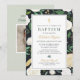Black Green and Gold Floral Baptism Baby Girl Invitation