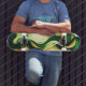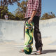 Black, green and yellow curving shapes Skateboard