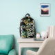 Black Green Beige Brown Midcentury Circles Pattern Printed Backpack