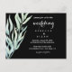 A modern botanical wedding invitation featuring a bold black background with soft watercolor greenery for a stylish and elegant look. The mix of classic serif and romantic script typography highlights the couple’s names beautifully. Perfect for nature-inspired weddings, evening ceremonies, and chic minimal themes with an artistic touch.