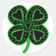 Unique and contemporary design for St Patrick's Day with stylised clover (heart leaves and small central heart) on white round sticker. Matching postcard, postage and more... Don't forget the whole collection.