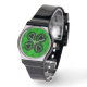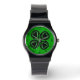 Unique and contemporary design for St Patrick's Day with stylised clover (heart leaves) + green background. Design on black watch with modern clock numbers. Don't forget the whole collection.