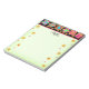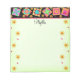 Enjoy your love of quilting with this notepad with a black quilt block header at the top and customised with your name below the header. Great gift for your quilter freinds. Quilt art is based on favourite patchwork quilt blocks such as the log cabin and star blocks plus unique blocks in vibrant and dynamic colours of orange, yellow, pink, turquoise, and lime green. The backagrouns is black that makes the colours pop for a beautiful colour palette. The writing part of this notepad is light green with small flowers decorating the edges. Quilt art is original art from fabric and quilt designer Phyllis Dobbs. This art is available on other products and in several colour backgrounds. Quilt business products are available in Phyllis' BusinesswithFlair store. Match with coordinating stamps, envelopes, stickers and return address labels.