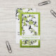 Black, green peacock and cherry blossoms custom business card design, featuring a black, lime green silhouette of a peacock bird and a cherry branch -sakura tree- with lovely flowers with metallic crumbled texture effect on white background and a black border around it. An elegant, floral template design with an oriental Asian flair. This girly design is fully customisable. Great for personal or professional use.
