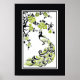Black, green peacock and cherry blossoms poster