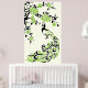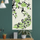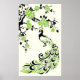 Black lime green peacock and cherry blossoms custom poster print, featuring a silhouette of a peacock bird and a cherry branch -sakura tree- with lovely flowers on white background. A design with an oriental Asian flair. Colours: Black, green, ivory.