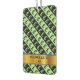 This air freshener design features a pattern of black pound sign (£) symbols within green stripes, and green pound sign (£) symbols within black stripes. It could make a great gift for somebody who works in the finance industry (such as an accountant, or an investor, or a foreign currency exchange trader, or in banking), or perhaps for somebody who has an interest in collecting monetary bills and coins. It also features a customised name or message within a faux gold look banner.