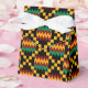 Favour box with a yellow, green, red, and black Kente cloth pattern. This is an African art design found in Ghana. Customisable. Perfect for your Kwanzaa holiday party celebration.