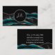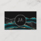 Black Green Silver Initials Agate Glam Marble Business Card