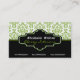 Black green white damask interiors business cards