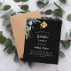 A classic black background, decorated with greenery. The blue colour is uneven. A golden cap with the graduation year. Personalise and add a name and party details.
