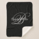 Black Grey and White Fancy Script Monogram Sherpa Blanket