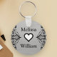 Black Grey Bride Groom Names Floral Wedding Key Ring