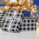 Add a modern touch to your gifts with black and grey buffalo plaid holiday wrapping paper, featuring sleek typography for an elegant Christmas presentation.