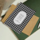 Send stylish holiday wishes with a black and grey buffalo plaid Christmas card, featuring elegant typography for a modern festive greeting.