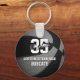 This cool basketball themed keychain features the image of a realistic basketball with alternating black and grey recolored panels - easily customise with school name, mascot name and player name & jersey number - by katz_d_zynes