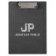 Black Grey Leather Look Distressed Name Monogram Clipboard