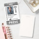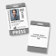 Vertical press ID with black and grey as accent colours. Add photo, logo, name, title, ID number and more.