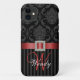 Black Grey Red Damask Stripes Pattern Case-Mate iPhone Case