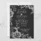 Elegant, simple, modern, and chic faux printed silver sequin glitter and grey floral on a black background, wedding invitations. This classic and sophisticated design is perfect for the trendy and stylish marrying couple. Personalise with your own message on the front as well as a customised monogram initial on the back. All photo print design.