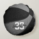 This basketball team colours pillow for him or her features the realistic image of a basketball that has alternating black and grey recolored panels - personalise with player name in an "autograph" style font overlying the athlete's jersey number - by katz_d_zynes