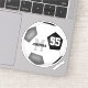 This team colours soccer sticker for boys or girls features the realistic image of a soccer ball that has black, grey and white panels - customise the player's name, monogram and jersey number - by katz_d_zynes