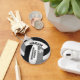 This personalised boys' volleyball keychain with team name features a black, grey and white volleyball upon which you can customise the player's name and jersey number plus school team and mascot name - by katz_d_zynes