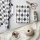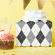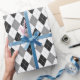 Black, grey and white argyle plaid pattern gift wrapping paper with light grey "stitching" extending diagonally across the diamond shapes - by katz_d_zynes