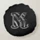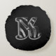 Black Grey White Monogram K Round Pillow
