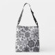 Cross Body Storage Tote Bag all over print style fashion statement accessory printed with Black And Grey On White Retro Floral Art Seamless Pattern original hand drawn graphic design artwork illustration by TheFabricSeal print on demand shop at Zazzle.com #ZazzleMade ©️Original. https://www.zazzle.com/store/thefabricseal