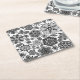 Black Grey White Retro Floral Art Seamless Pattern Square Paper Coaster