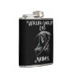 The flask showcases a detailed Grim Reaper design featuring a haunting watercolor illustration of Death (Angel of Death)—complete with his classic black hood and scythe that seems to point directly at the viewer. The Reaper’s skull face and bony hands add to the eerie, spooky vibe, making this flask a perfect addition to any horror-lover’s collection.