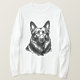 Striking Black GSD Portrait Long Sleeve Tee! Perfect dog lover gift for cold weather. This detailed German Shepherd head art pops on a white long sleeve shirt. Ideal GSD apparel for men and women who love their working dog. Great dog owner gift or canine graphic wear.