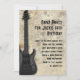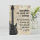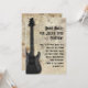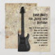 Guitar player's birthday party invitation that also comes as an instant download. Grunge beige background and black electric guitar design. Distressed font with top section larger for party type and name of honoree. All other party text is added in a paragraph and text is aligned to the right. Perfect for celebrating the teen with a noisy band party where the kids get together and jam.