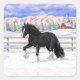 Black Gypsy Vanner Irish Cob Draft Horse In Snow Square Sticker