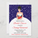 This festive and fun bridal shower invitation features a beautiful black hair bride in a white wedding dress with a poinsettia flower bouquet. In the background are snowflakes on a navy blue background. The text combines script and sans serif fonts for a stylish and modern look. This is perfect for a Christmas or winter themed Bridal Shower.