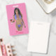 Beautiful brunette bikini model posing in a lotus blue 2-piece swimsuit, holding a red margarita to customise with your own greeting, name, message, etc