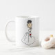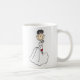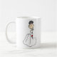 A stick figure bride with black hair wearing a long white wedding gown on stick figure wedding design T-shirts and more that you can customise with a name or text saying!
