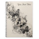 Add a personal touch with this elegant white notebook featuring a diagonally placed design of black halftone butterflies, decorative flourishes, and a lace-like motif on a natural background. A perfect, customizable gift for Mother's Day, bridal showers, birthdays, or as a thoughtful present for any woman!