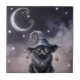 Black Halloween Cat Wearing a Witch Hat Tile
