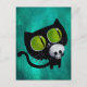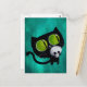 Black Halloween Cat with Skull Postcard
