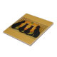 Step back in time to a classic All Hallows' Eve with this enchanting vintage-style art tile featuring a delightful tableau of Halloween icons. Four sleek black cats, embodying the spirit of the season, are captivated by the warm glow of a traditional, toothy Jack O'Lantern, with the word "HALLOWEEN" boldly displayed above.