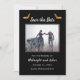 A gorgeous foil bat makes this Save the Date card stand out. The background on the front is midnight black and there is a bat pattern on the back. Perfect for a goth or Halloween wedding. See our other gothic wedding ideas as well.