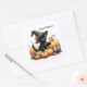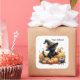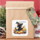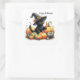 Black Halloween Kitten With Pumpkins & Witch's Hat Square Sticker