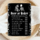 Spice up your bridal shower with our Black Halloween "Over or Under" Game! This spooky and fun game features a dark, Halloween-themed design that adds a gothic touch to your celebration. Guests will try to guess whether certain statements about the bride and groom are over or under the given numbers. It's a perfect way to engage everyone and bring some festive Halloween spirit to your special day! 🖤💀🖤