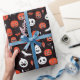 Black Halloween Pattern with pumpkins and ghosts Wrapping Paper