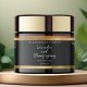 A waterproof label for cosmetics and/or soap products with a black background and faux hammered gold border. This label measures 8.25 inches by 1.75 inches (209 mm by 44 mm) and is suitable for jars with a diameter of 2.6 inches (66 mm) or more and a label height area of at least 2 inches (50mm). Most 8 oz (240 ml) and 16 oz (480 ml) jars fit this description, but check the jar specifications to be sure. This label makes a great choice for packaging beauty products that require larger labels like sugar scrubs, body butters, and thick lotions and creams.