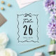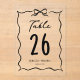 Elegant retro theme wedding table number card featuring a hand drawn bow frame.