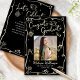 Be proud, rejoice and showcase this milestone of your favorite grad! Send out this quirky, whimsical, simple, modern, personalized photo collage announcement card for an event to remember. Fun, real gold foil handwritten script typography and hand drawn graduation icon sketch doodles, along with your custom photo, overlay a dramatic black background. On the back, faux gold color and white hand drawn doodles and your personalized copy overlay black. Personalize the custom text with your grad’s photo, name, school and class year on the front. Add your personal note, next school she’s attending, party info, etc. on the back. Matching invites, thank you cards, cap toppers, napkins, plates and other graduation goodies are also available in this trendy and stylish collection. Guaranteed to add stylish fun to their special occasion!